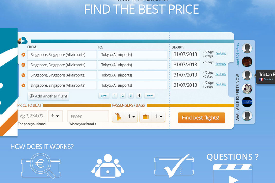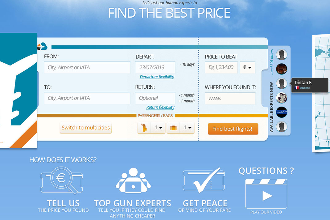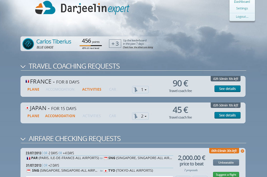 Is there a way to pay the lower price ? Darjeelin offers you an answer, by asking human experts to find the best offers for travel. From a simple city to city flight to a whole travel planning, Darjeelin’s experts will help you.