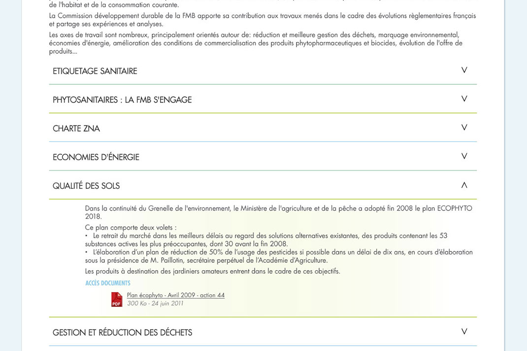 During my Brands at Work internship, I was asked to submit a redesign idea for the FMB (Fédération des Magasins de Bricolage) website. Keeping only the brand as graphic reference, I offered a simpler, fresher look, using shapes from the logo to enhance each section.